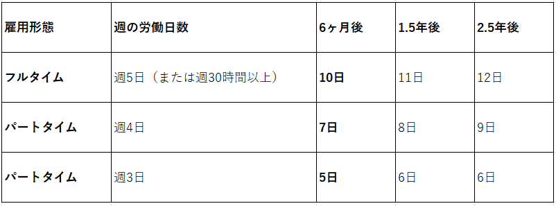 契約形態(週の労働日数)によって、付与される日数は異なります。